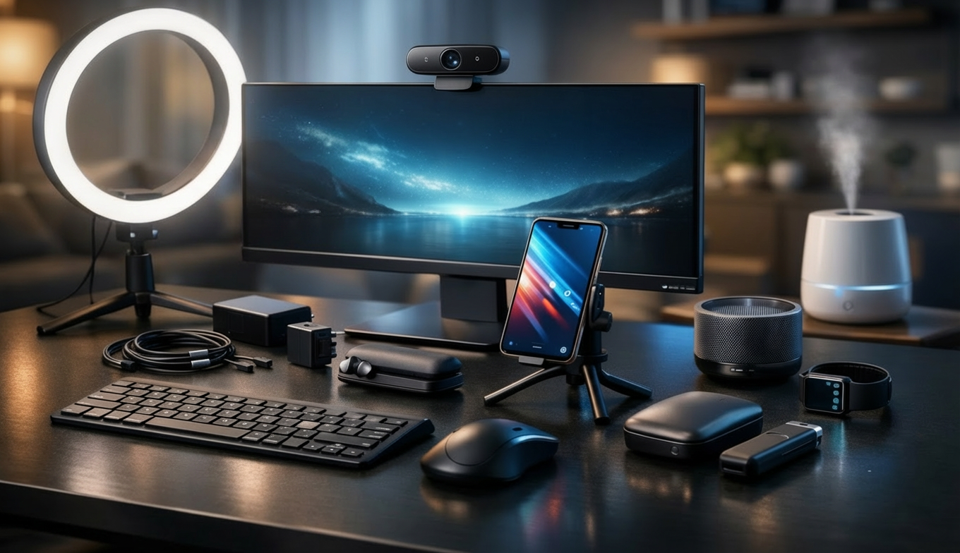 Kings Queens Tech Things offers reliable tech essentials, including Ring Lights, Webcams, Keyboards, Computer Mouse, Charging Cables & Adapters, Power Banks, Tripods & Stands, Phone Mounts & Holders, Earbuds & Headphones, and Speakers—designed to keep your setup simple, modern, and efficient.